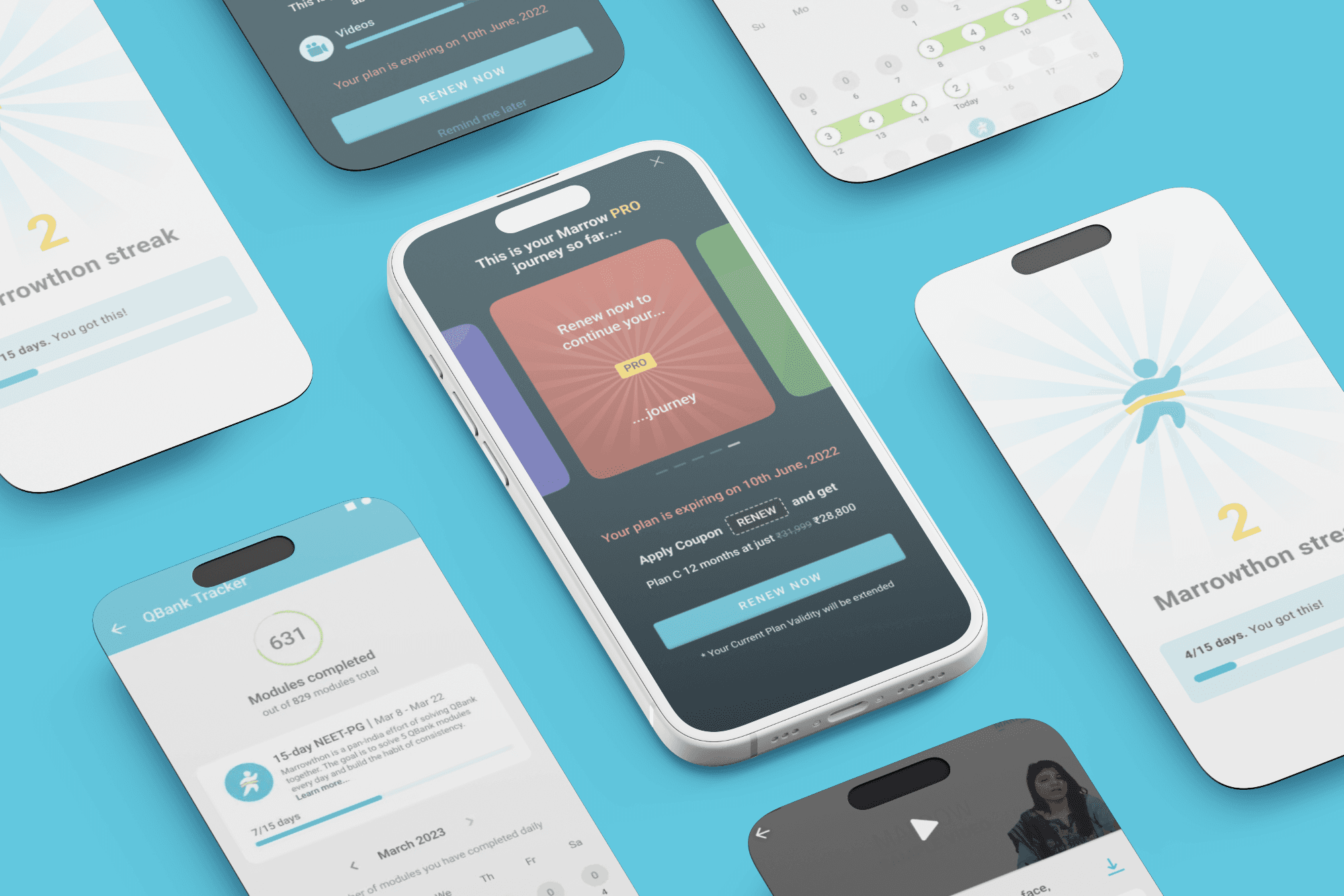 Marrow is India's leading platform for medical postgraduate entrance preparation — trusted by lakhs of doctors across NEET PG, INI-CET, and beyond. I joined as a product designer working on features, flows, and improvements across a product already deeply embedded in people's lives.
