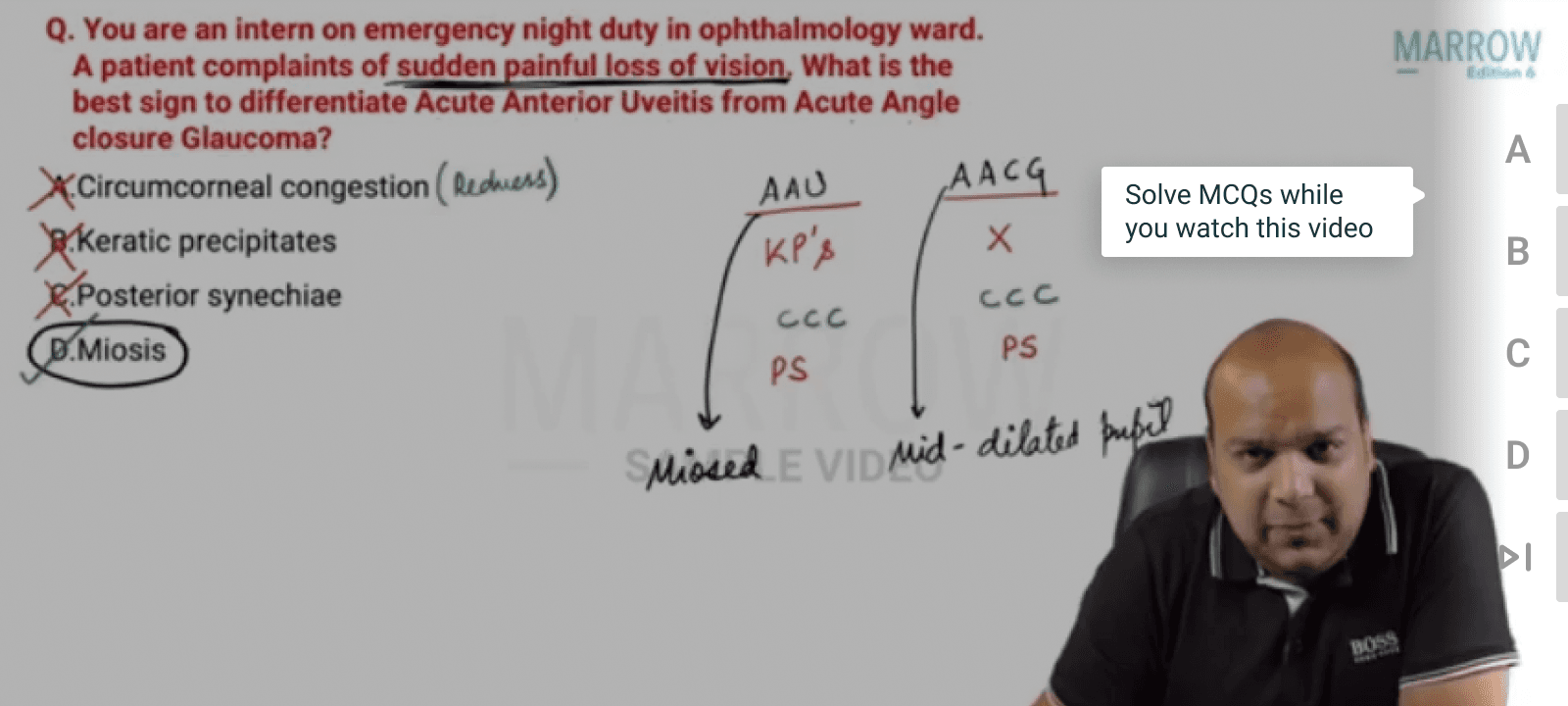 Students pause the video as soon as the MCQ appears so they can attempt it independently.